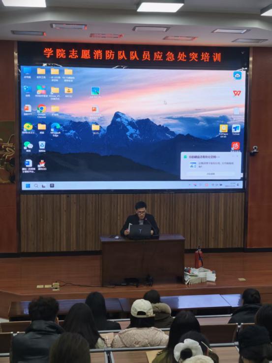 保卫处副处长余孟启老师开展志愿消防队队员培训