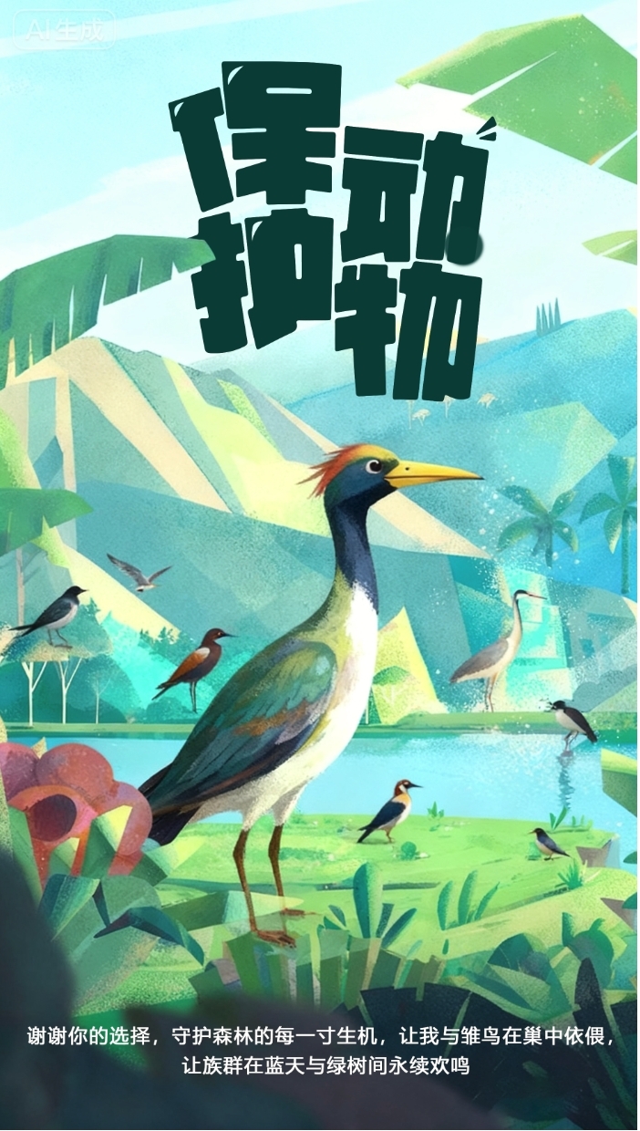 建筑规划与设计学院团总支联合“新莓”社团,发挥学生创意才能,制作鸟类保护主题海报,内容涵盖鸟类生态功能、专项行动要点,突出“保护鸟类、人人有责”核心信息,直观呈现鸟类生存现状与生态价值,海报被广泛转发至班级群、朋友圈,在校园内营造浓厚的爱鸟护鸟氛围。