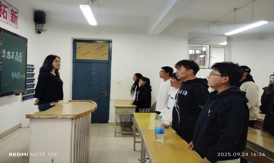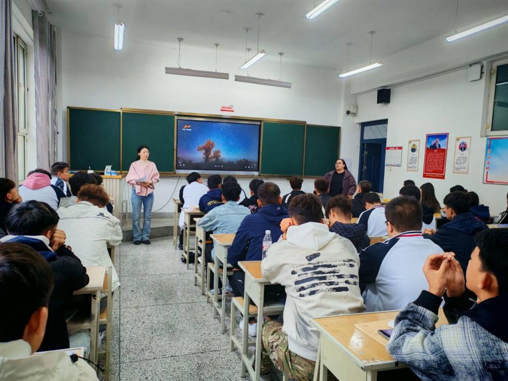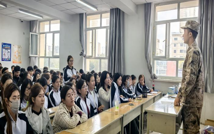建筑工程学院以“典型引路、精神传承”为鲜明亮点,让红色教育直抵人心、更具感染力。在军事故事分享环节,普高建25-2 班学生张航源走上台前,详细讲述黄继光烈士舍身堵枪眼的英勇事迹,用真挚的语言生动诠释“一不怕死、二不怕苦”的革命精神,字字句句引发台下学生强烈共鸣,让英雄精神在讲述与聆听中代代传递;观影环节精心选取《731》《长津湖》《建军大业》等多部经典影片,从苦难历史的铭记到革命征程的回望,再到建军初心的探寻,引导学生从不同历史维度读懂和平的来之不易,让家国情怀在光影熏陶中深深扎根;知识抢答环节里,学生们不仅积极应答国防历史、军事常识类题目,更主动分享阅兵式上的新武器装备知识,条理清晰的讲解中,尽显对国家国防动态的关注与热爱。