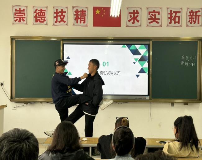 工程管理学院以“重细节、求实效”为核心亮点,将育人目标深度融入活动各环节。在防身技巧教学中,学院紧密结合大学生日常场景,精心拆解“背后遇袭躲闪”“紧急倒地缓冲”等实用动作,着重强调“避开要害、借力发力”的科学原则,实操过程中更安排教官全程巡回指导,确保每位学生都能精准掌握技巧;开展红色歌曲教唱前,教官会先详细讲解歌词背后的历史背景,让学生在熟悉旋律的同时,深刻理解其中蕴含的集体精神与爱国情怀;军事故事分享环节则精选“狼牙山五壮士”“祁发宝戍边”等经典案例,搭配图片、视频等丰富素材增强内容感染力,还特别设置互动环节引导学生深入思考、感悟英雄精神;知识抢答活动精心设计必答、抢答两大环节,配备专业抢答器与计分板保障流程规范,每当学生答错时,教官会即时补充相关知识,真正实现“以赛促学、以学促知”的育人效果。