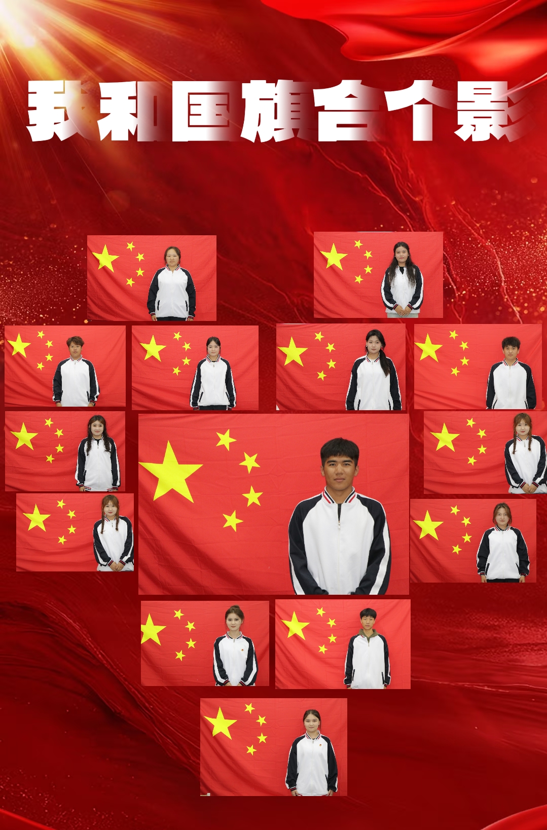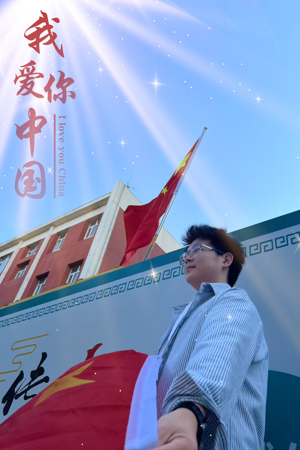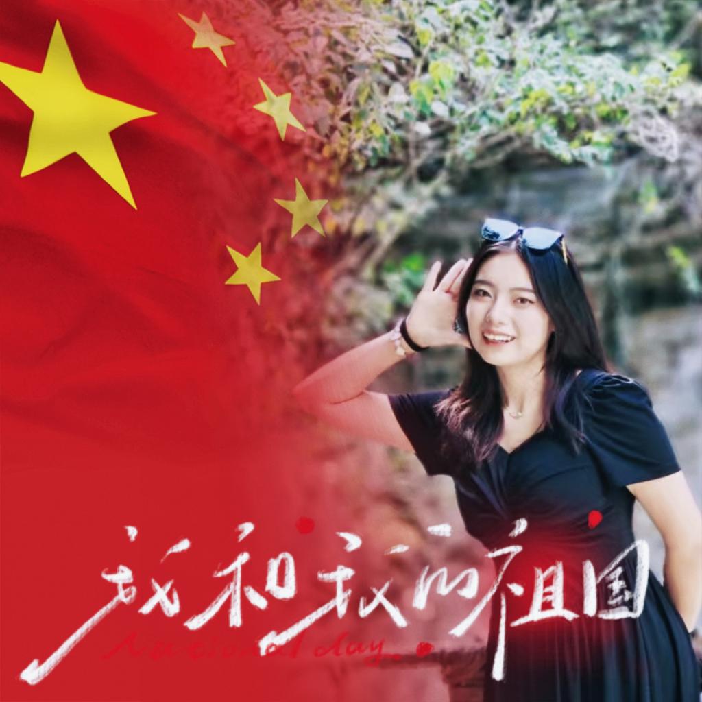 以青春之姿,怀赤诚之心,与国旗同框,共贺祖国华诞,愿山河锦绣,繁荣昌盛。