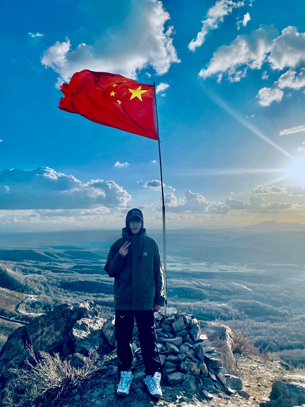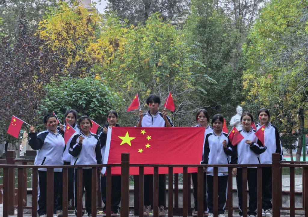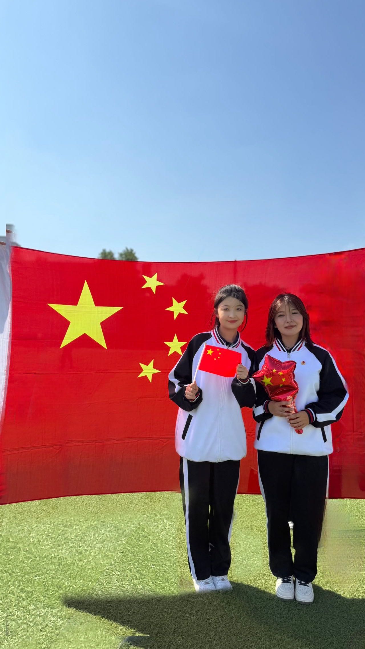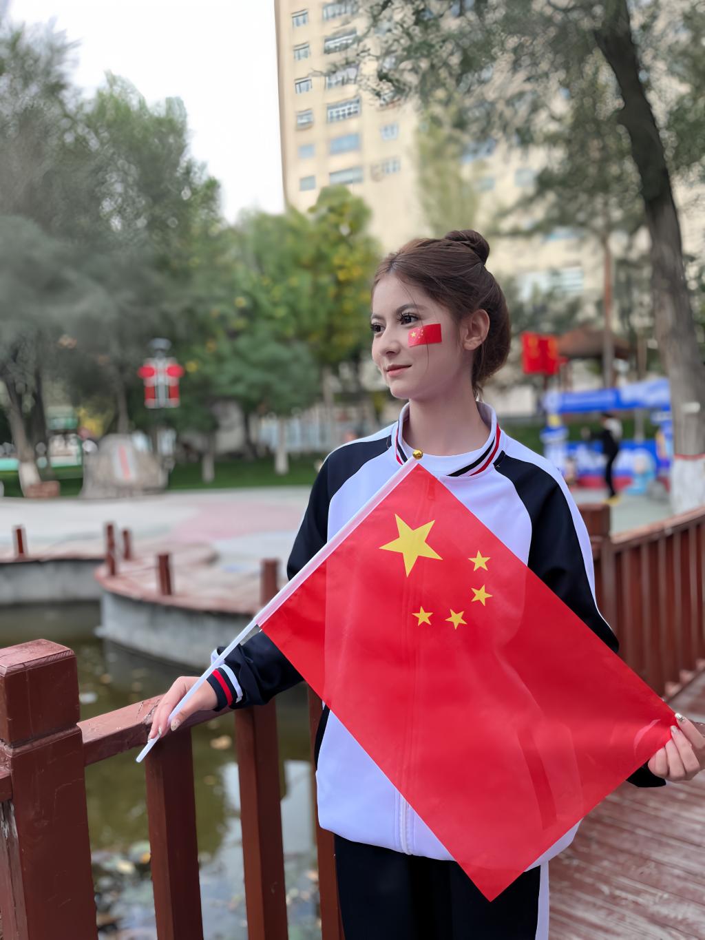 以青春之姿,怀赤诚之心,与国旗同框,共贺祖国华诞,愿山河锦绣,繁荣昌盛。