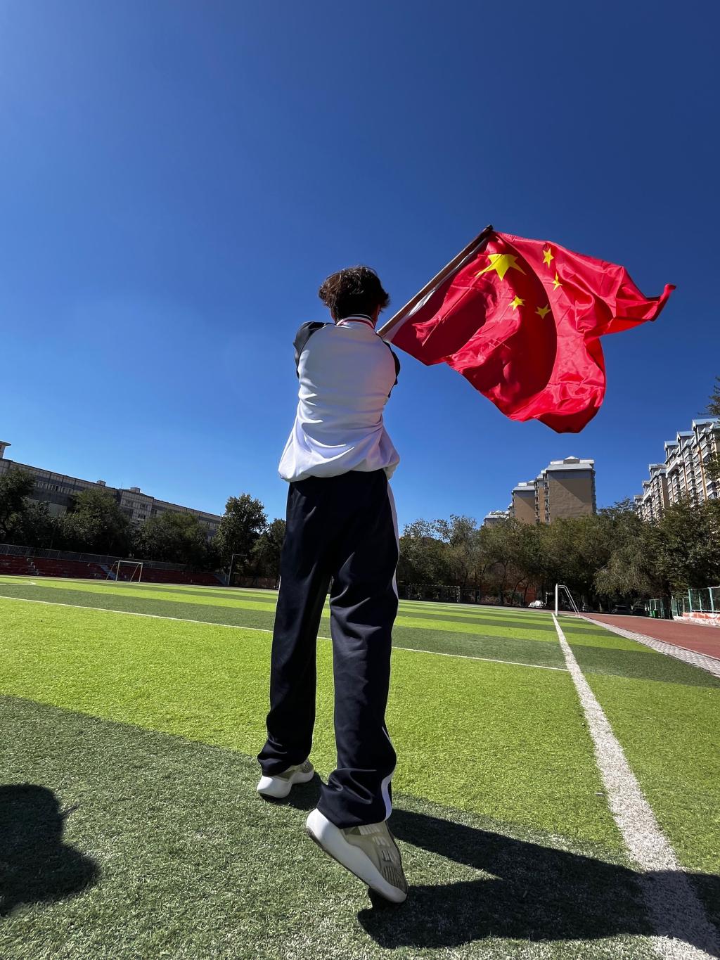 国旗的红色温暖了我们在建院的求学时光,我们渴望用在这里一起学到的知识与技能,为祖国添一抹属于我们的奋斗底色,在专业道路上彼此扶持、共同前行,也愿祖国能愈发繁荣。