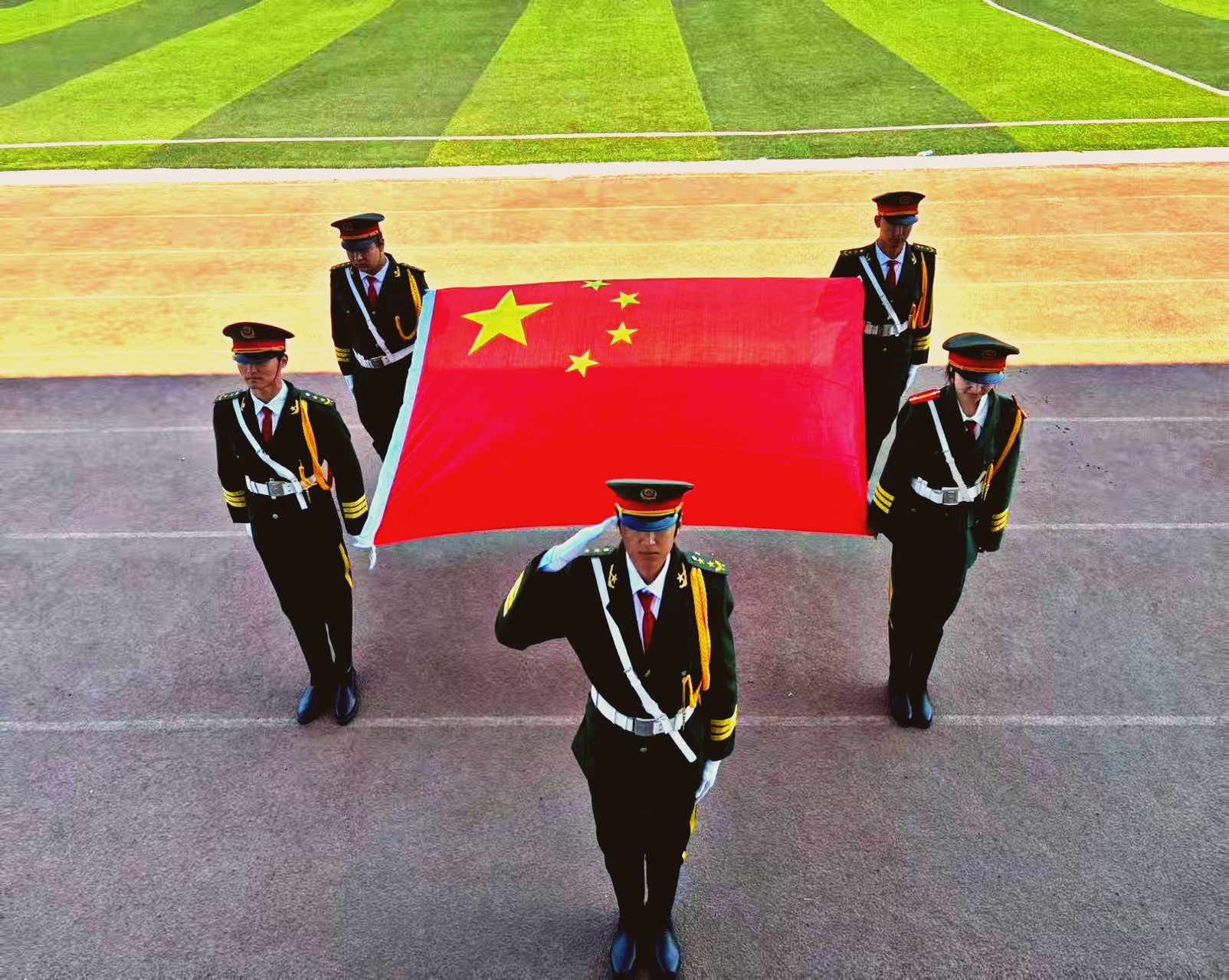 当国旗飘扬在校园的上空,国旗护卫队将建院人的初心融入对祖国的祝福并忠心守护,愿祖国能永远保持年轻的姿态,在时代的浪潮中始终昂扬向上,书写更多精彩。