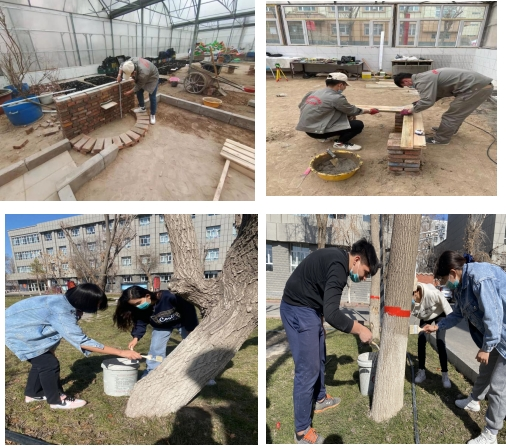 组建特色志愿队,开展校园花房清洁、树木涂白等绿化服务,以环境专业技能美化校园。