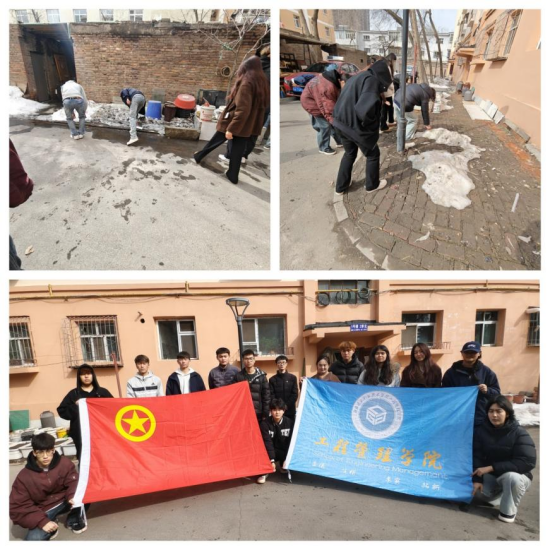 立足工管专业优势,深入社区解答房屋安全、设施维护问题,开展校园周边科普宣讲;同步开展社区环境清洁、残雪清理等服务。
